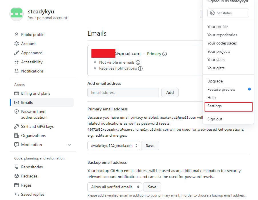 깃허브는 gmail.com 으로 깃은 google.com 으로 설정되어 있었다.