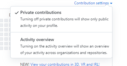 혹시 내 작업이 private Repository에서 작업하기 때문일 수 있다. 그래서 아래 그림처럼 잔디가 private 작업도 반영하도록 설정해주었다. 결과는?