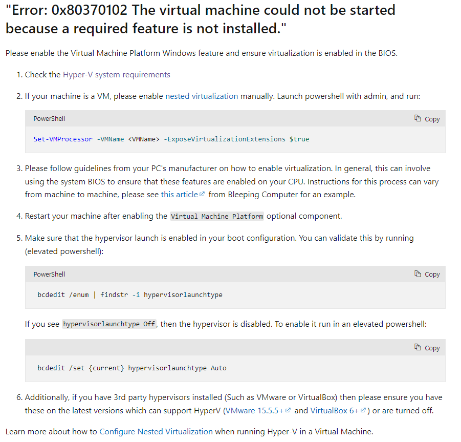 For information please visit https://aka.ms/enablevirtualization