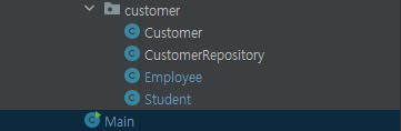 }위에서 작성한 클래스들을 통해 생성되는 인스턴스들을 관리해주는 저장소의 역할을 지닌 CustomerRepository를 생성한다.