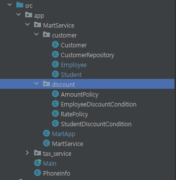 할인 조건에 관한 클래스들입니다. 각 고객들은 해당 할인 조건에 해당되면 가격 할인을 받을수 있습니다. 즉 모든 고객들은 학생인지, 직원인지, 어느쪽도 아닌지 검증이 필요합니다.
